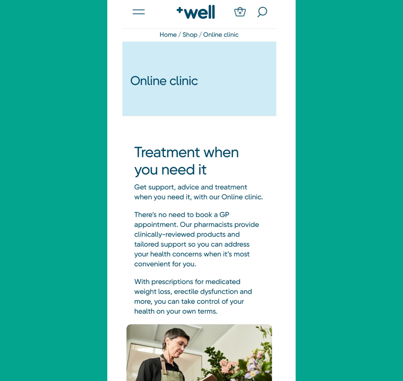 Our ecommerce offering, enabling both patients and customers access to a variety of healthcare products through well.co.uk. This area is growing from strength to strength each year.